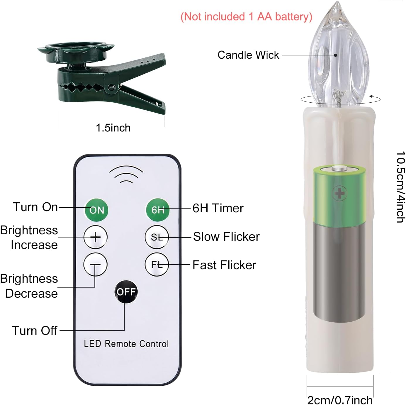 12PCS LED Flameless Candles, Cimetech Battery Operated Candle Lights with Remote Control Timer/Clips, Warm White Window Candles for Home Indoor Outdoor Wedding Halloween Christmas Trees Decor