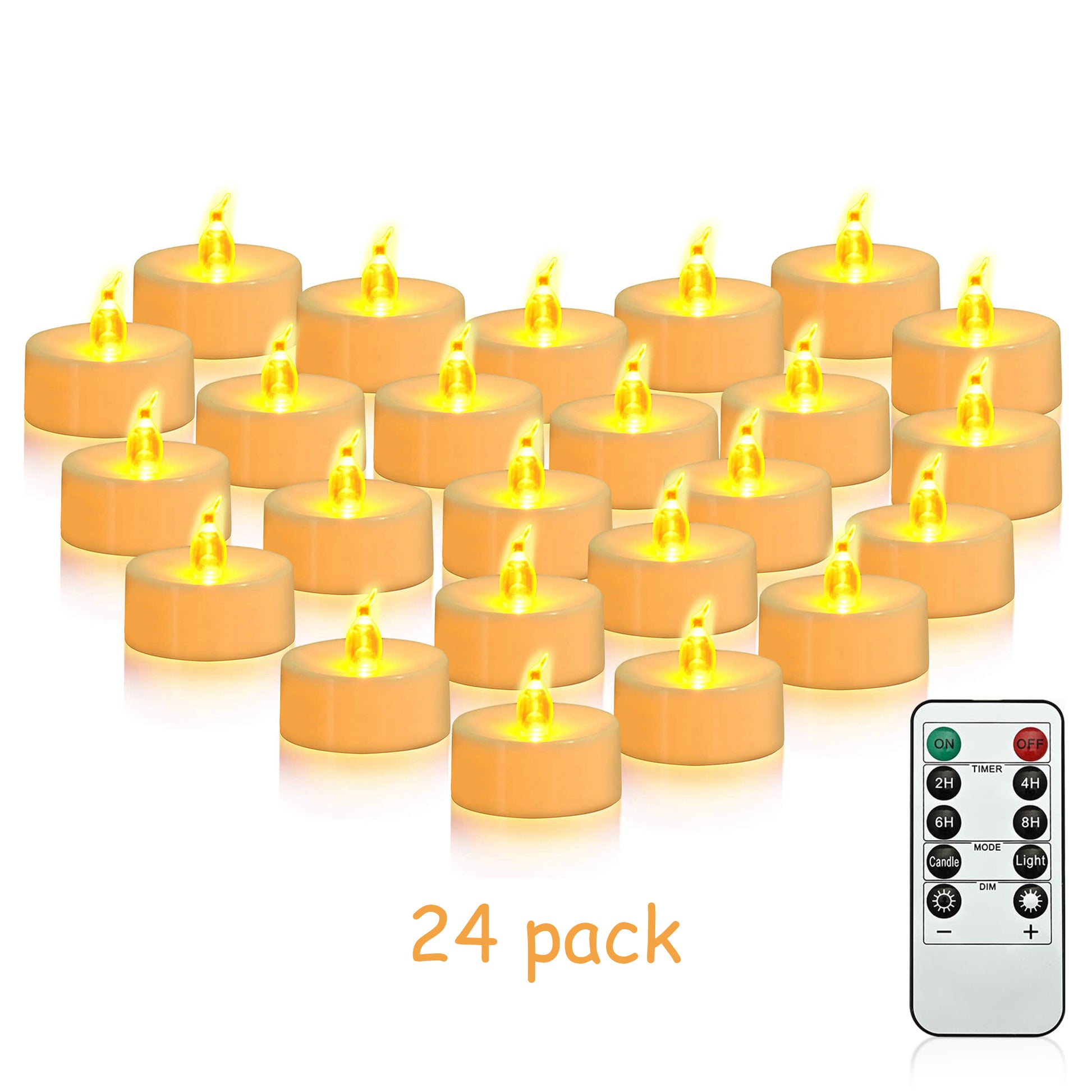- 【Timer Function】Save you the trouble of switching them on and off every day and save battery power to keep the Led Tea Lights burning longer.In addition to the warm atmosphere, you can also control them intelligently.You receive a 10-button remote control with all Led candles.You can set your Led tea lights to a 2/4/6/8 hour timer, adjust brightness or change flicker mode