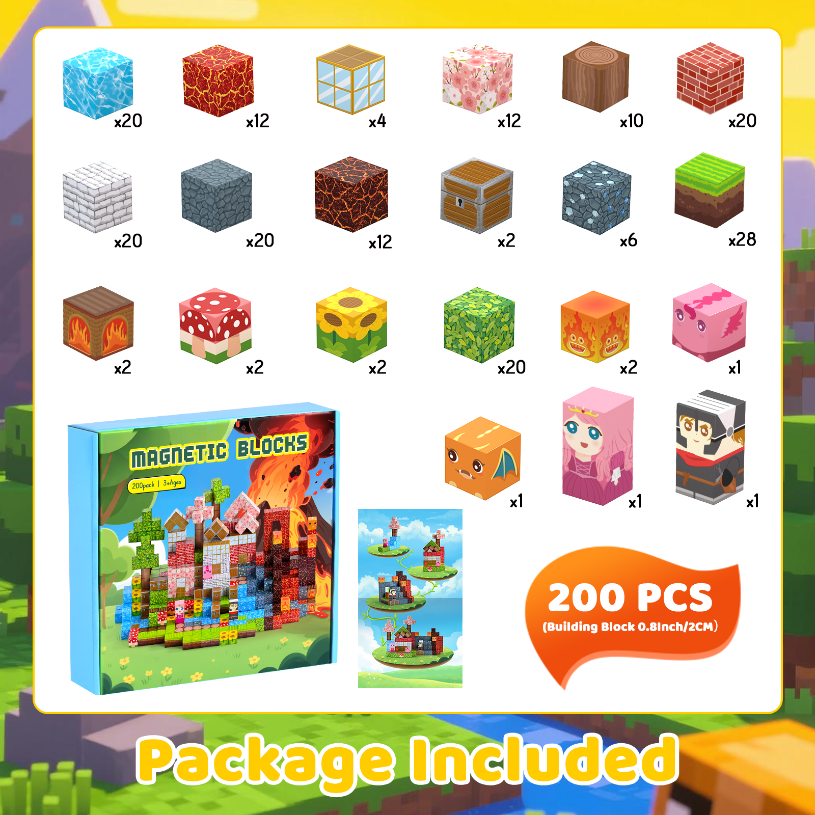 - 【🌋Upgraded Create Magnetic Blocks for Lava Building】RaceGT magnetic blocks kit sparks creativity with unique themes to build: bubbling lava flows, flowing river, red house and green grassland. The included idea booklet blends narratives, characters, and creative patterns, empowering kids to build guided scenes or craft original adventures. This 200PCS/set is a must-have for the preschool learning classroom sensory play. Our open-ended playset lets their imaginations run free!