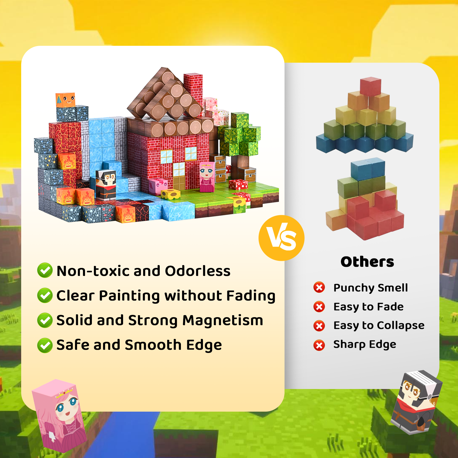 - 【🏠Creative STEM Learning Blocks】This STEM sensory toy uses advanced printing technology, resulting in vibrant colors and clear patterns that bring the magnetic blocks to life. It includes a detailed creative guide to help kids confidently recreate the dreamy homeland—or build their own dream wonders. These engaging and fun blocks make screen-free time super appealing. Recommended for children aged 3+!