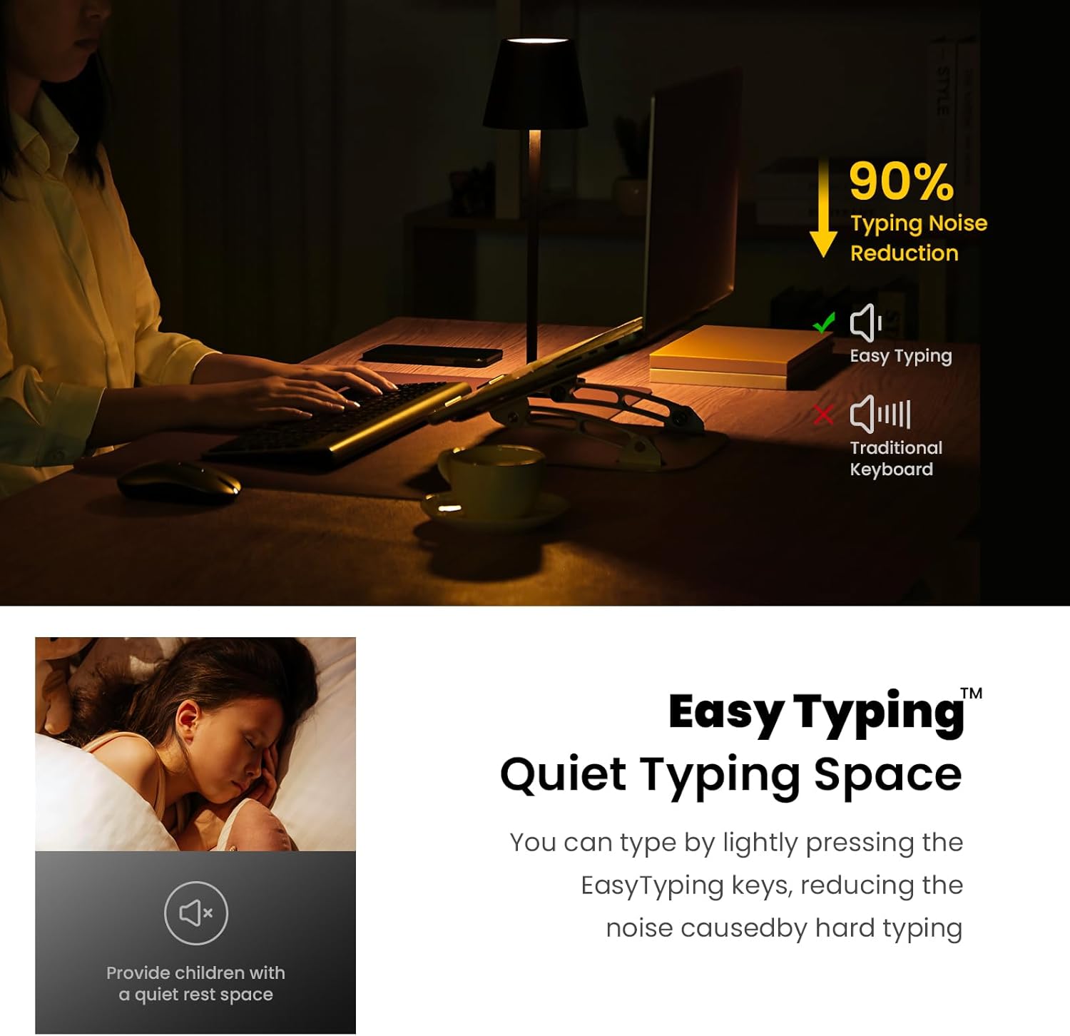 The keyboard adopts a scissor Switch Key design, Uniform force distribution, low sound, short travel, and smooth pressing provide a comfortable and quiet input experience
